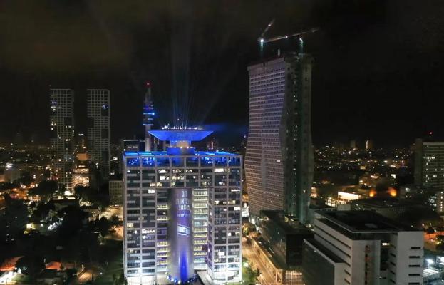 אלומת זיכרון הוארה על גג בניין משרד הביטחון, להנצחתם של חללי מערכות ישראל