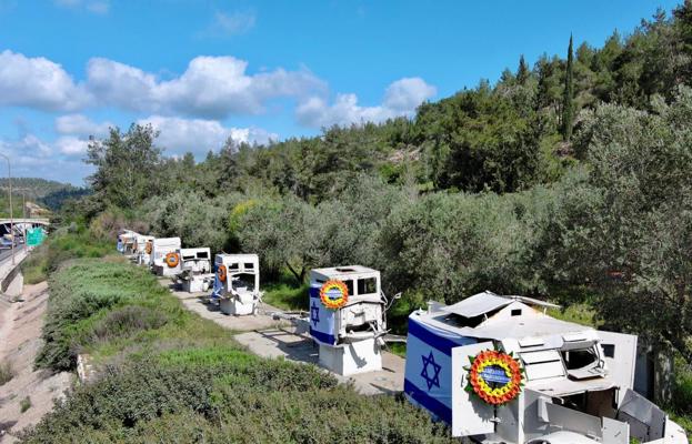 דגלי ישראל וזרים הוצבו על המשוריינים בדרך לירושלים
