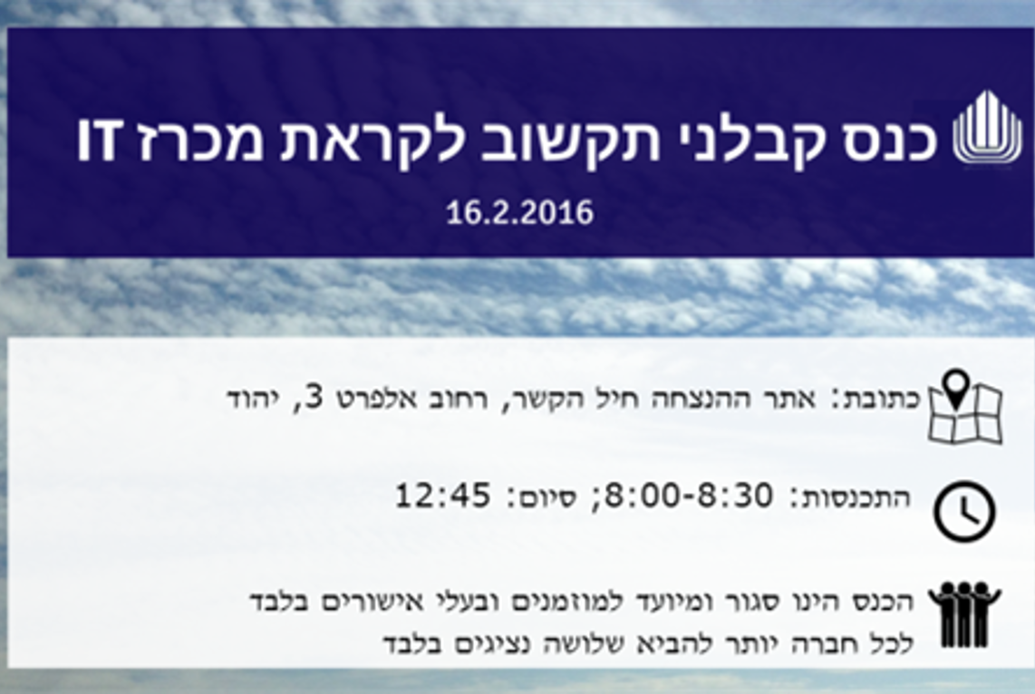 מינהל הרכש נערך לפרסם מכרז לקבלן תקשוב ראשי לצה"ל. הקבלן שיזכה יופקד על איחוד עשרות מרכזי המחשוב של צה"ל והקמת מרכזי מחשוב (DATA CENTER) חדשים בהיקף של מאות מיליוני שקלים בנגב. מטה "תוכנית IT דרומה" במנה"ר יקיים ב-16 בפברואר, יחד עם אגף התקשוב בצה"ל, כנס מיוחד שמטרתו לעודד חברות ישראליות בעלות סיווג ביטחוני מתאים להתמודד במכרז