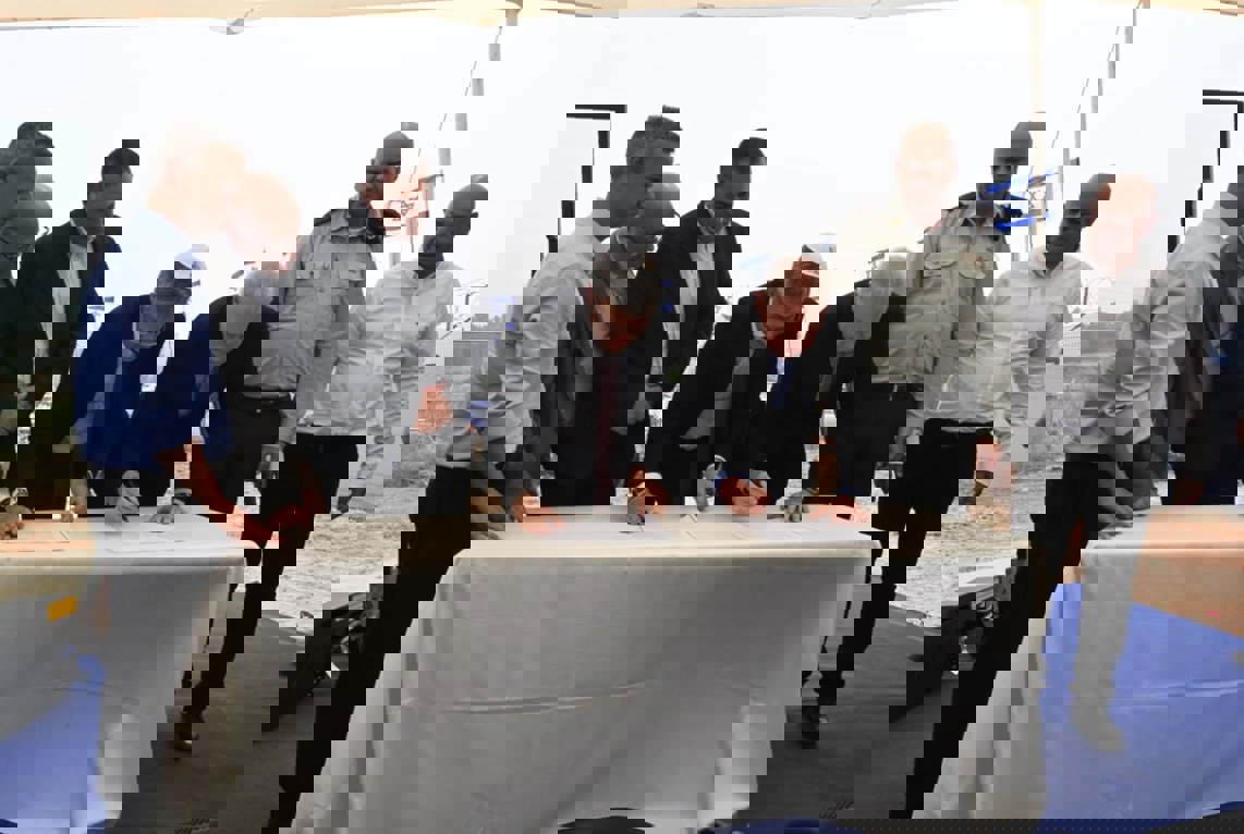 שר הביטחון, יואב גלנט, מנכ"ל משרד הביטחון, אלוף (מיל') אייל זמיר, ראש העיר רמלה, מיכאל וידל ובכירי צה"ל ומשרד הביטחון הניחו את אבן הפינה להקמת המחנה הרב חיילי הגדול של צה"ל ברמלה