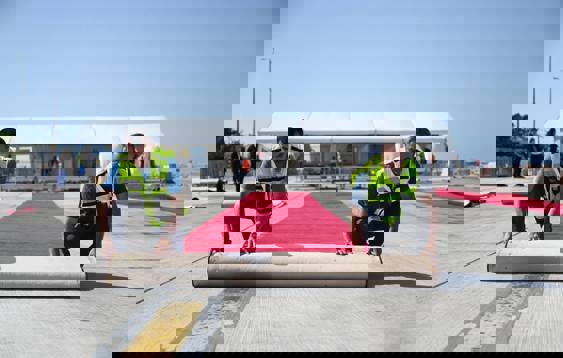 שטיח אדום, עשרות דגלים, במות ועיתונאים ימתינו לנשיא ארה"ב, דונלד טראמפ, עם נחיתתו בנמל התעופה בן גוריוןקרא עוד