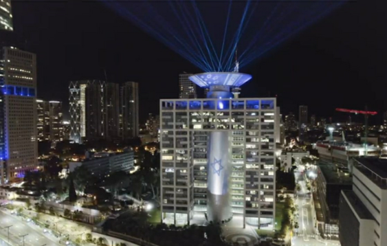 מיצג יום הזיכרון: אלומת זיכרון תודלק מהערב על גג בניין משרד הביטחון, להנצחתם של חללי מערכות ישראל.